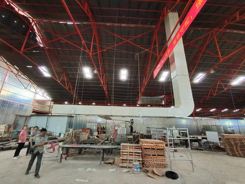 福建某陶瓷廠,高大鋼結(jié)構(gòu)車間,做了集塵排煙,減少了粉塵,但一到夏季高溫車間十分悶熱,空氣不流通,員工工作汗流浹背,辛苦不止,生產(chǎn)效率還降低,該工廠需要做通風(fēng)降溫,但市面上降溫產(chǎn)品選擇很多,了解后有點(diǎn)眼花繚亂,拿不定注意,后通過朋友介紹,聯(lián)系上我們江西分公司技術(shù)員,經(jīng)過我們專業(yè)的分析,結(jié)合該工廠的預(yù)算及降溫需求,車間內(nèi)設(shè)計(jì)安裝藍(lán)奇恩工業(yè)大風(fēng)扇,空氣流動(dòng)加快,達(dá)到降溫同時(shí)且通風(fēng)換氣,幫助工廠降低投入成本。
